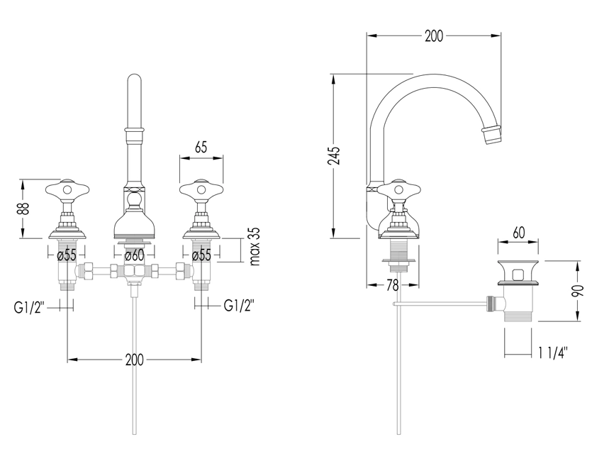 Devon&Devon Excelsior King Смеситель для раковины на три отверстия, цвет: хром devon&devon excelsior king смеситель для раковины на три отверстия, цвет: хром