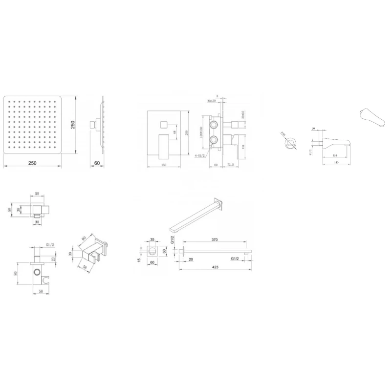 Душевой комплект 300x200 мм Berges Ventas 3O 073010