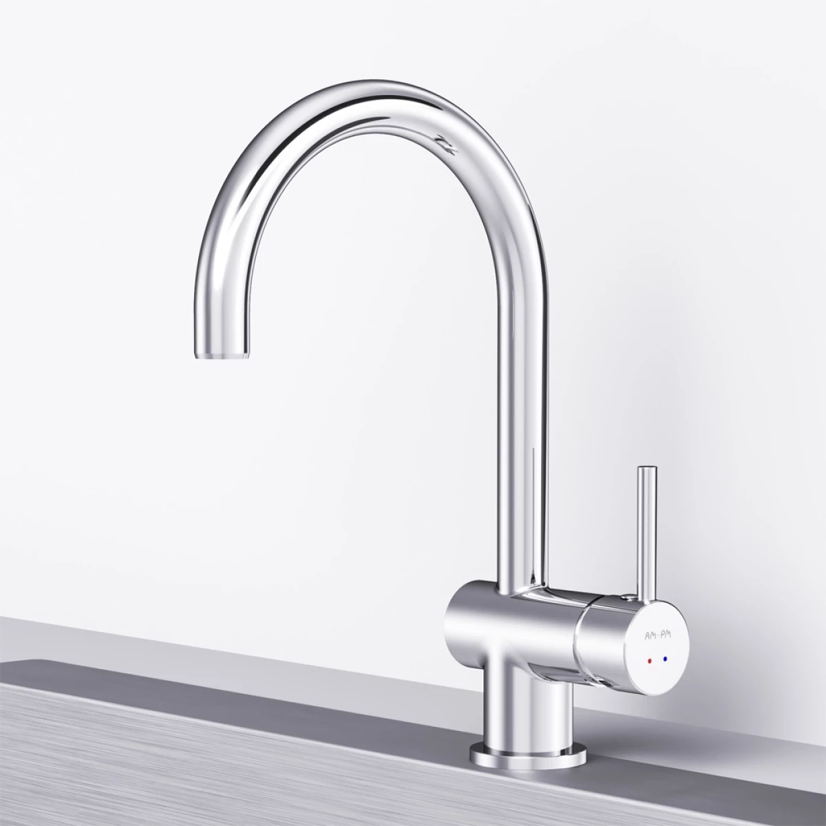 - Подает воду при поднесении руки к датчику и отключается через несколько секунд