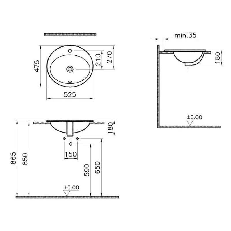 - Встраиваемая сверху овальная раковина с современным дизайном.