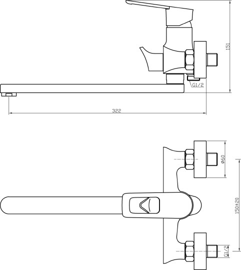 - Длина излива: 32.2 см