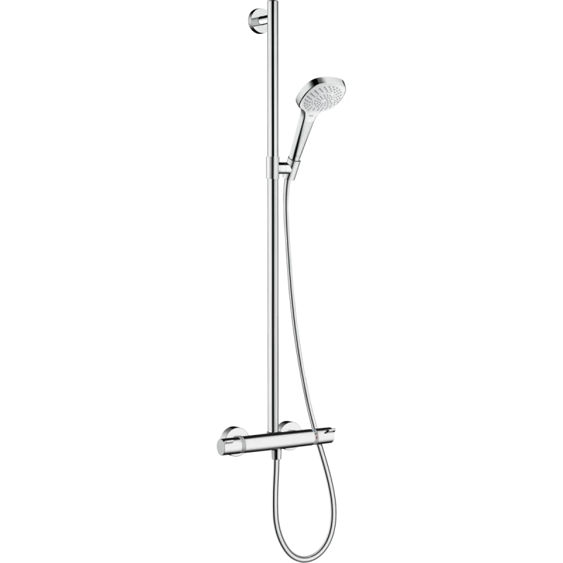 Термостатический смеситель для душа Hansgrohe Croma Select S 27248400 с душевым гарнитуром выполнен в современном стиле, надежен и долговечен.