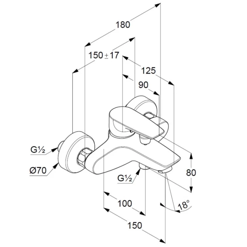 - Длина излива: 15 см