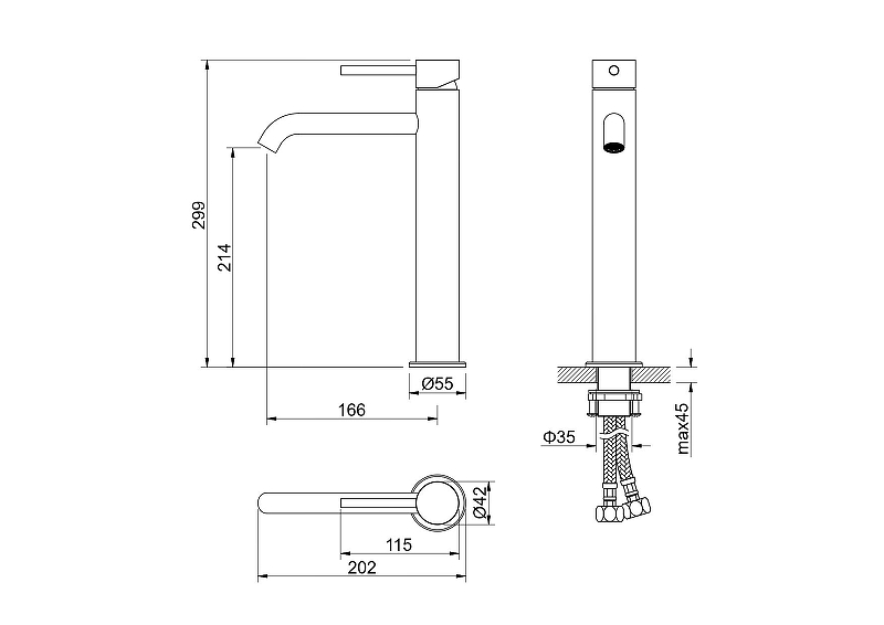 Смеситель оснащен подводкой Shida 600 мм из нержавеющей стали, что обеспечивает надежность и долговечность конструкции. Крепление для смесителя выполнено из латуни, что гарантирует прочность и устойчивость к коррозии.