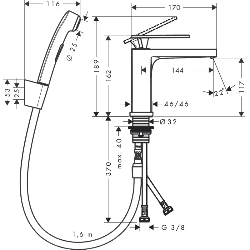 - Дополнительное оснащение: Гибкая подводка,Крепления,Душевой шланг,Лейка гигиенического душа,Настенный держатель