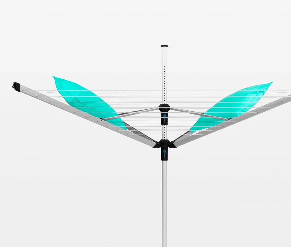 Сушилка Brabantia 100222 Lift-O-Matic Advance устанавливается в бетон на пластиковое основание с закрывающимся отверстием. Устройство в форме зонта легко раскладывается благодаря механизму Easy-Lift. На прочную стальную конструкцию с туго натянутыми веревками общей длиной 50 м можно повесить до 40 кг белья. Высота изделия регулируется в пределах 149–197 см. Направляющие плавно поворачиваются, обеспечивая доступ к любой стороне сушилки. Возможно размещение подушек и других постельных принадлежностей. Предусмотрены специальные отверстия для сушки одежды на плечиках. Прочные нескользкие веревки устойчивы к ультрафиолету. Их можно заменять по отдельности. Легко надеваемый и снимаемый чехол из атмосферостойкого материала с молнией по всей длине защитит приспособление от дождя и ветра.