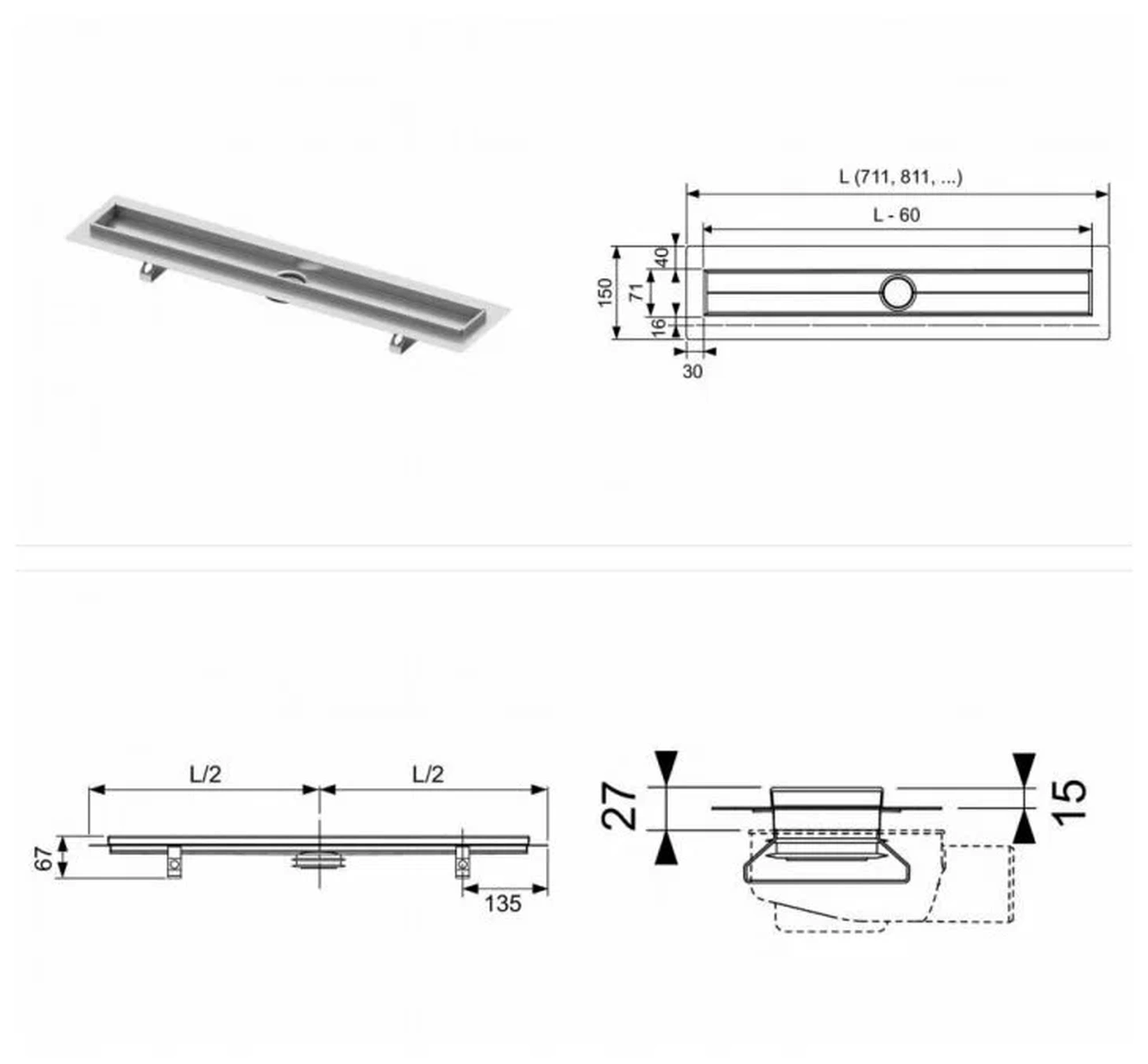 TECEdrainline Дренажный канал прямой с гидроизоляцией Seal System 700 мм, 600700 (6 007 00)