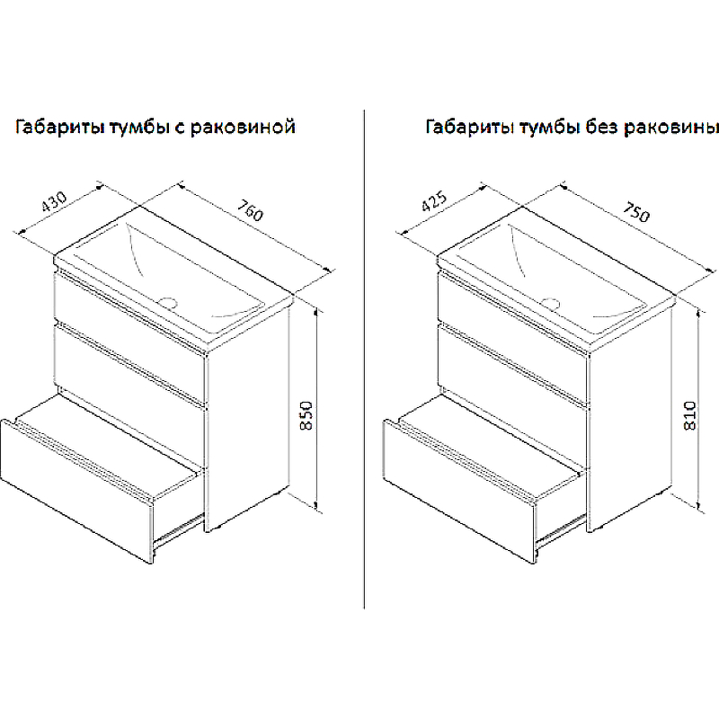 Тумба под раковину AM.PM Gem S 75 M91FSX0752OF светлый дуб, с тремя выдвижными ящиками, с двумя хромированными ножками, для длительного срока службы в ванных комнатах с повышенной влажностью.